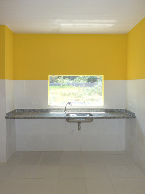 Cozinha Casa 1: clara e alegre. A janela sobre a bancada em granito proporciona uma vista agradável vista para o verde.