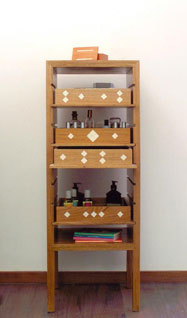 Cômoda vertical de múltiplo uso, podendo ser utilizado em qualquer ambiente da casa ou do escritório. As “caixas-gavetas” não possuem ferragens, podendo ser retiradas para deslocamento e colocadas com qualquer uma das quatro faces aparentes.