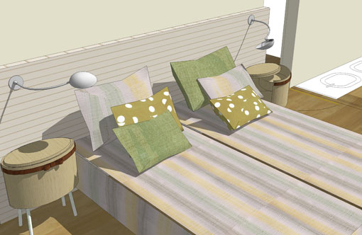 A cabeceira única e independente une as camas e mesinhas laterais soltas. Desenhadas pelo nosso escritório, as mesas de cabeira leves e ovais podem ser personalizadas “ele & ela” com um charme especial nos cintos-arremates em couro: fivela ou laço.